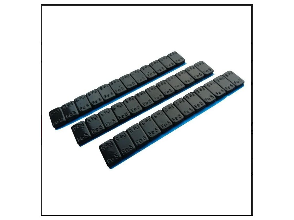 Lepené ocelové závaží 60 gramů, vyrobené ve verzi 12 x 5 g, pokryté antikorozním nátěrem.